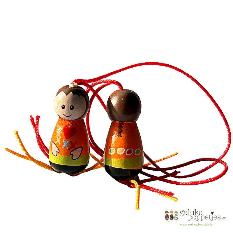De maat van deze leuke houten gelukspoppetjes is ongeveer 25x12 mm. Het is een gelukshangertje gemaakt van FSC hout, zodat er met dit gelukspopje ook goed voor de natuur wordt gezorgd. De beschildering is op waterbasis en de mensen deze gelukspoppetjes maken werken daar onder goede omstandigheden.