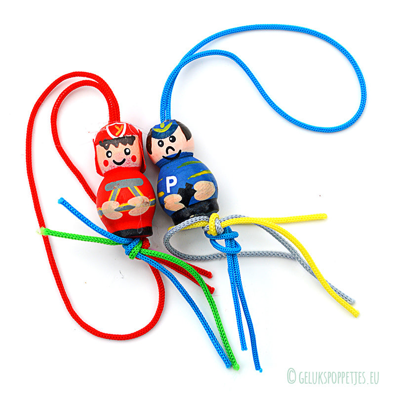 De hulpverlener gelukspoppetje politieagentje van ongeveer 20 mm is ook verkrijgbaar in de andere hulpverleners, verpleegster en brandweermannetje.