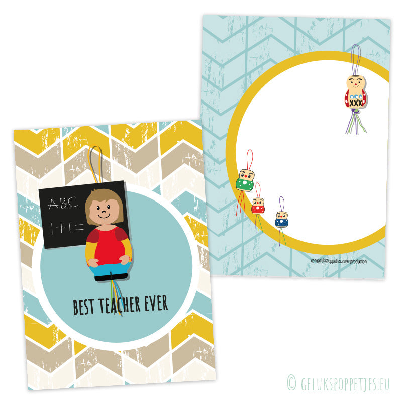 "Best teacher ever" gelukskaartje met de afbeelding van ons gelukspoppetje docent. leuk om er ook het houten gelukspoppetje docent bij te geven, dat maakt het kaartje nog een beetje specialer! Dit gelukskaartje is ongeveer 10.5x7.4 cm en gedrukt op 300 grams papier.