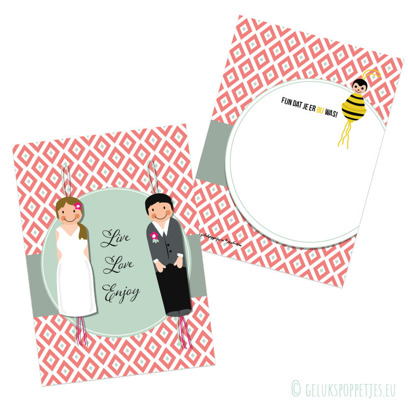 Live Love Enjoy gelukskaartje om mensen te bedanken dat ze erBIJ waren. OP de achterkant staat