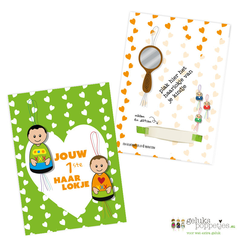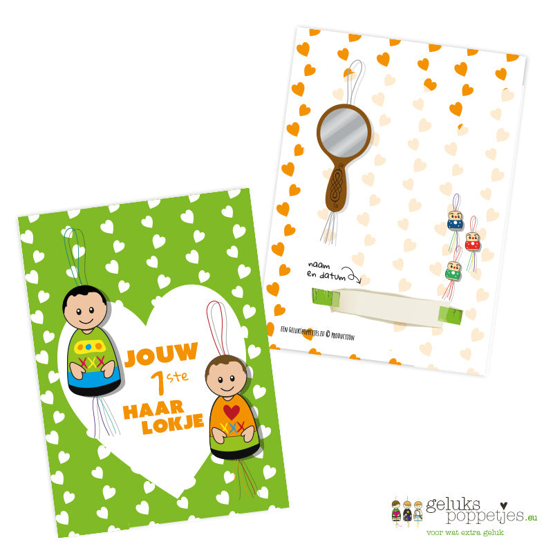 Een kaartje dat ook voor kappers en thuiskapsters een leuk kleinigheidje is om een 1e haarlokje mee mee te geven.