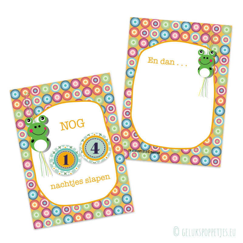 Een vrolijk gelukskaartje met stickers om het aantal nachtjes aan te geven.