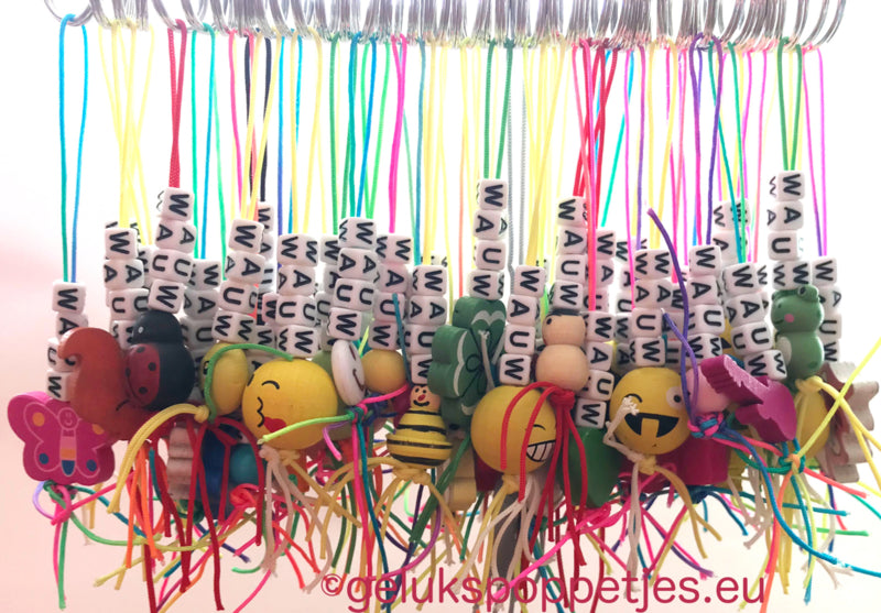 Dan is dit lekker makkelijk. Laat ons weten welk woord we er aan mogen maken en wij stellen een mooie mix samen, bestel je er 1 dan maken we zelf een keuze van het gelukspoppetje, bestel je er meerdere, dan zorgen we ervoor dat je een leuke mix krijgt en niet allemaal dezelfde! U kunt 1 woord kiezen uit het keuze menu, maar we kunnen er ook een naamsleutelhanger van maken of een woord vermelden bij opmerkingen, tot 7 letters, wilt u meer letters, dan kunt u deze uiteraard bij bestellen!